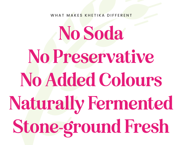Everyday, we soak jowar and dals, grind slowly on stone chakki and ferment the old-fashioned way. Reaches your fridge always fresh, never stale.