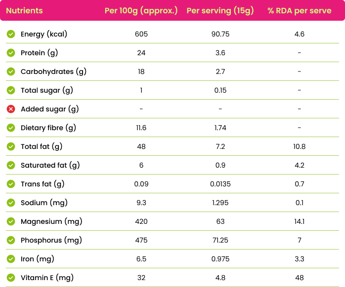Naturally rich in Vitamin E, healthy fats, magnesium, selenium, and plant protein, these seeds support immunity, skin health, energy release, digestion, and overall wellness.