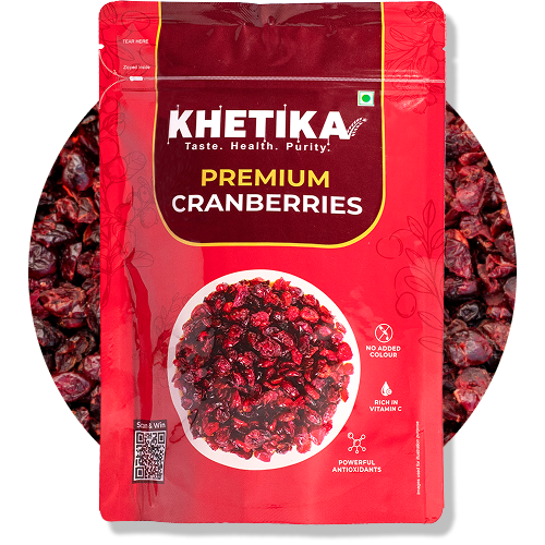 No artificial colours and preservatives are added in our dried cranberries. They retain their natural red colour and are made with minimal processing.
