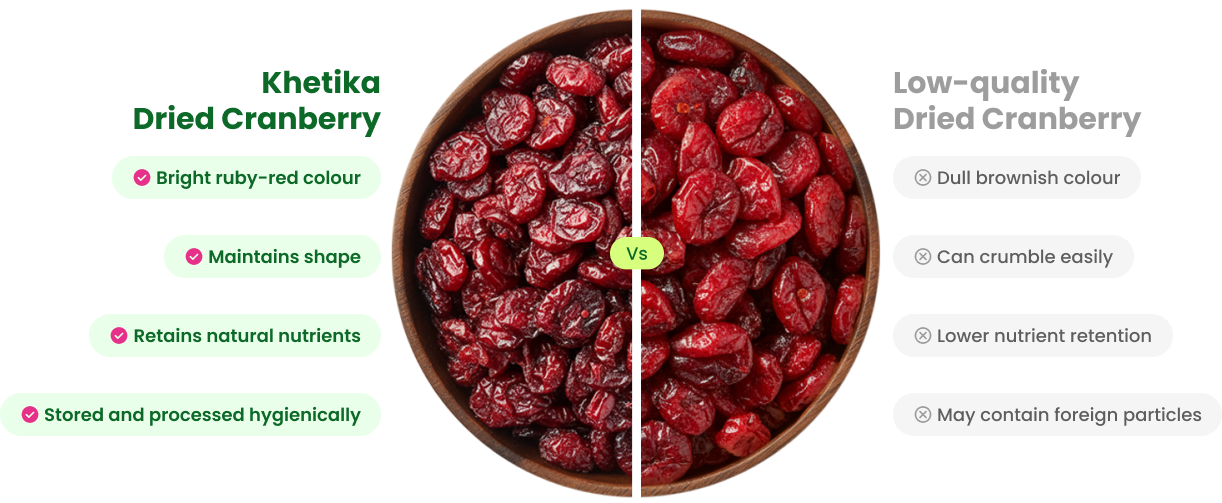 Our strict quality standards ensure you only get the best cranberries every time, with consistent size, natural flavour, and uncompromised freshness.
