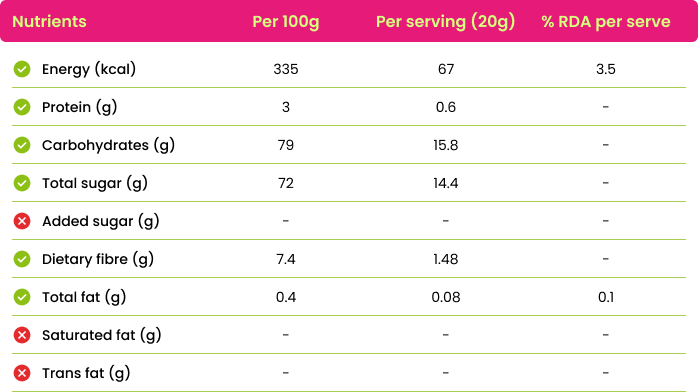 Perfect for snacking straight from the pack and a perfect replacement to sugar in desserts.