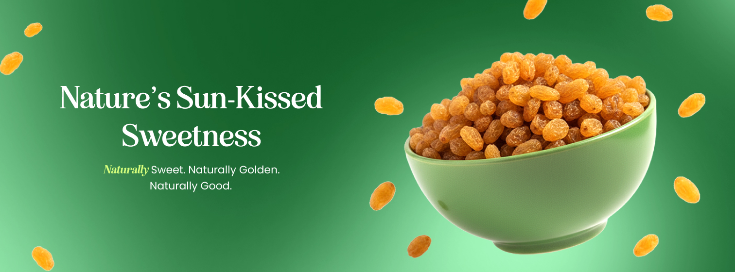 Enjoy the gentle sweetness and soft bite of high-quality golden raisins dried at peak ripeness. Their natural flavour and fibre-rich goodness make them a versatile addition to snacks, baking, and everyday meals.
