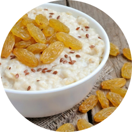 Warm oats cooked with milk and topped with plump yellow raisins for natural sweetness.