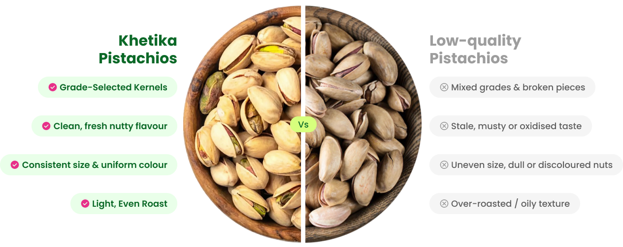 With our strict quality checks, you get only the best pistachios with consistent size, clean flavour, and pure wholesome goodness.
